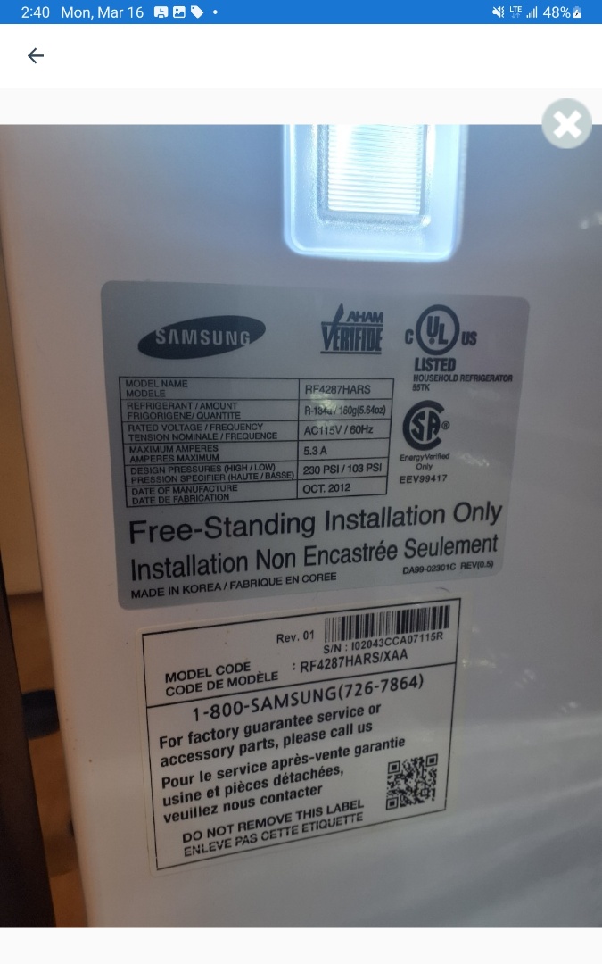 Edmond, OK - Samsung fridge leaking water